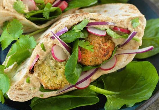 rondelles de radis et de ½ falafels. Arroser d’un filet d’huile d’olive et parsemer de coriandre. Déguster sans attendre.