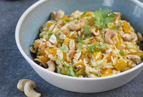 Parsemer de noix de cajou, de coriandre et de curry (facultatif) et servir immédiatement.
